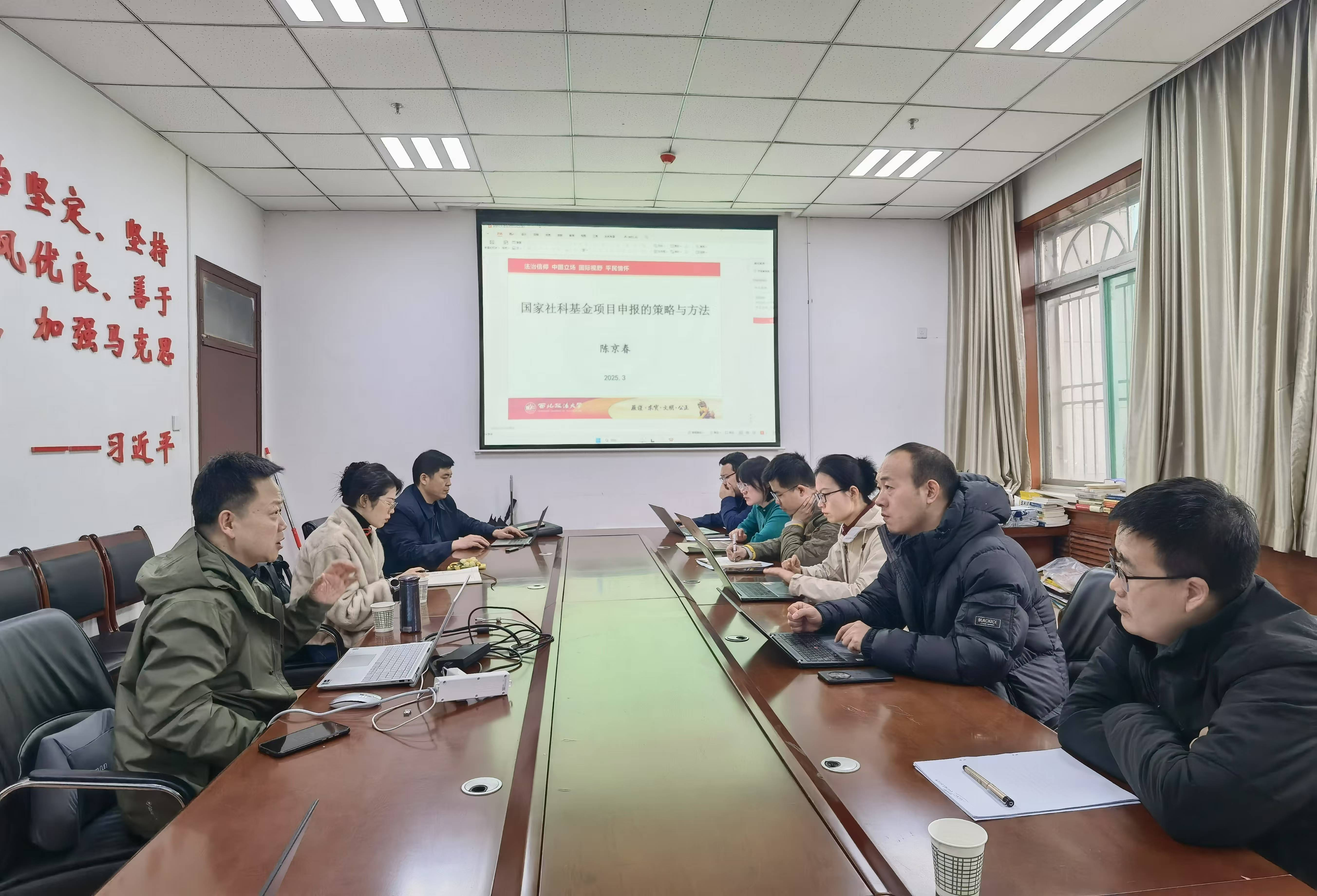 3月15日上午,动画疯 举办2025年度科研项目申报辅导报告会。陈京春教授应邀作了题为“国家社科基金项目申报的策略与方法”专题报告。学院副书记刘卫波、各教研室主任和拟申报本年度科研项目的青年教师代表参加了报告会。会议由副院长王东明主持。