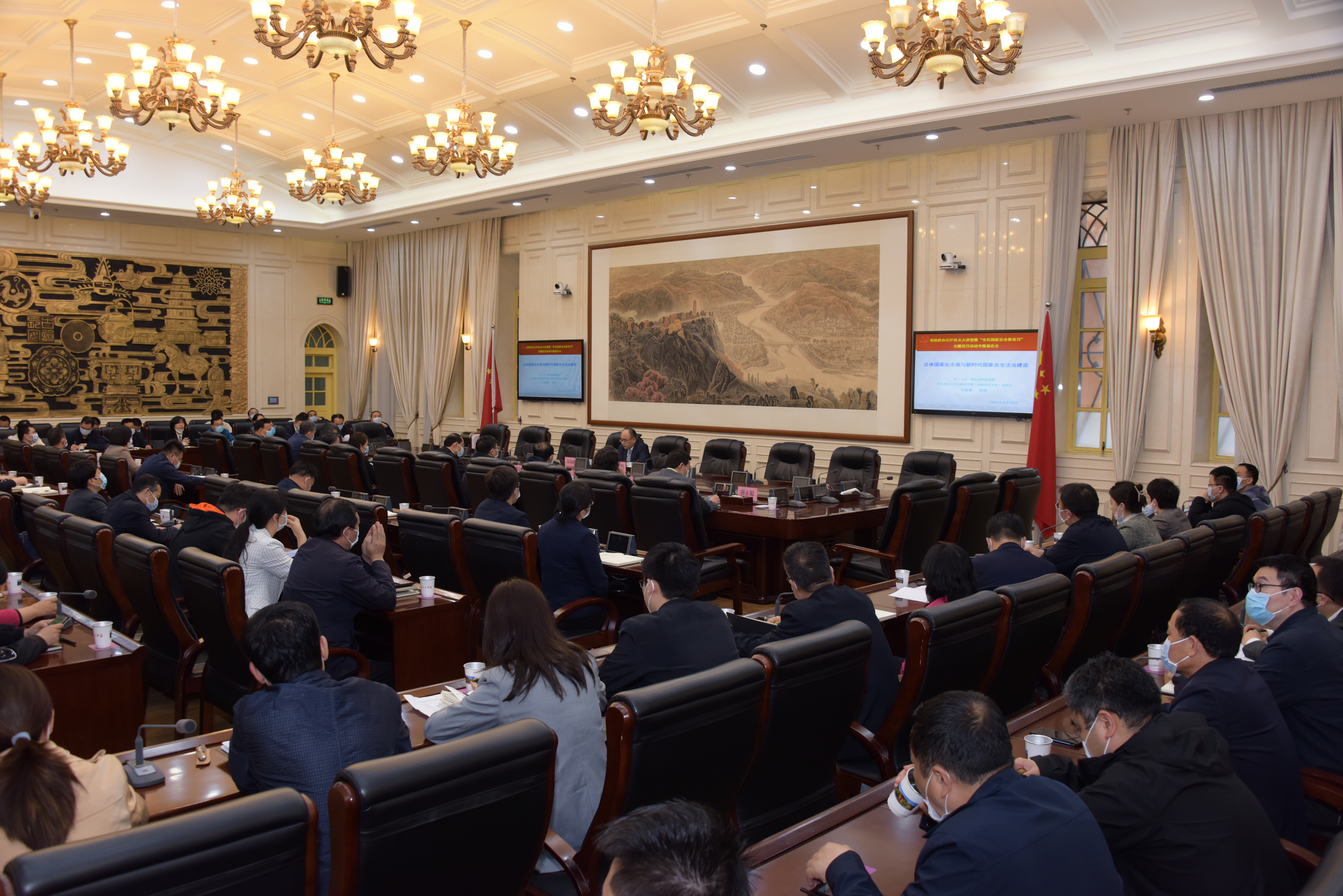 在第七个国家安全教育日来临之际,4月14日下午,省政府办公厅举办机关大讲堂,邀请动画疯 、反恐怖主义法学院(动画疯 )副院长宋海彬教授就《总体国家安全观与新时代的国家安全法治建设》开展专题授课。省政府副秘书长周宇松主持,相关厅领导和厅机关、厅属单位干部职工参加。