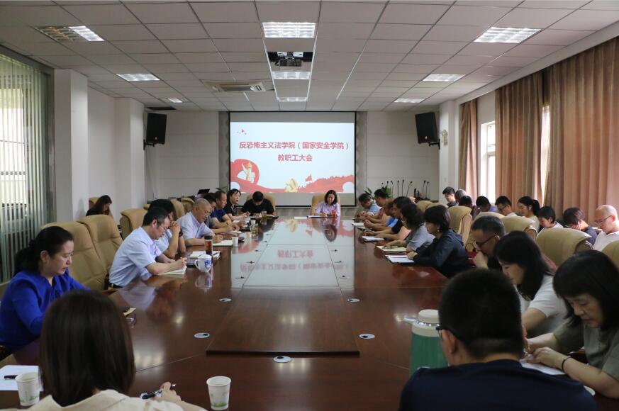 )在院会议室召开全体教职工大会,王健副校长、教务处负责同志、学院领导班子及全体教职工参加大会。会议由学院党委书记李政敏主持。