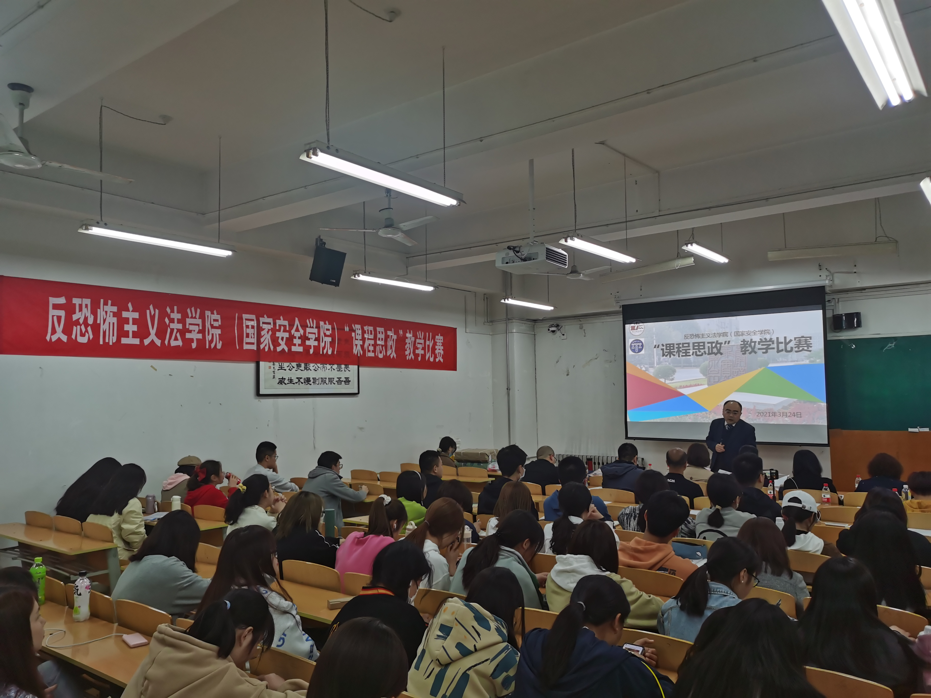 3月24日晚7点半,反恐怖主义法学院(动画疯 )首届“课程思政”教学比赛在长安校区天平楼B107教室举行。比赛由副院长宋海彬教授主持,党委书记李政敏同志做了开场致辞,院长舒洪水教授为获奖教师颁奖并总结讲话,动画疯 访问学者、新疆医科大学马克思主义学院殷冀锋副教授担任了本次比赛的学术点评人。学院青年教师代表与2021级全体学生一起全程观摩了比赛。
